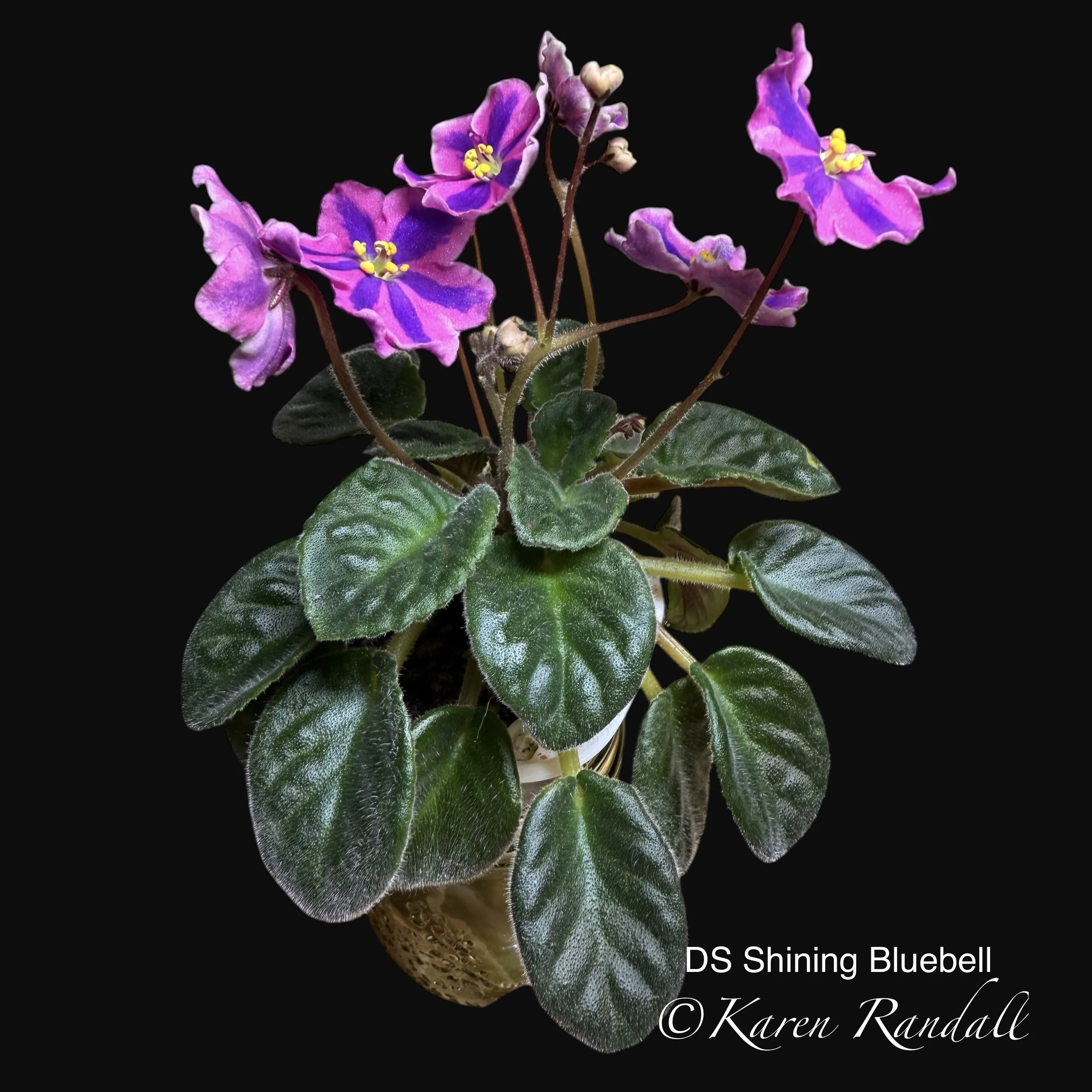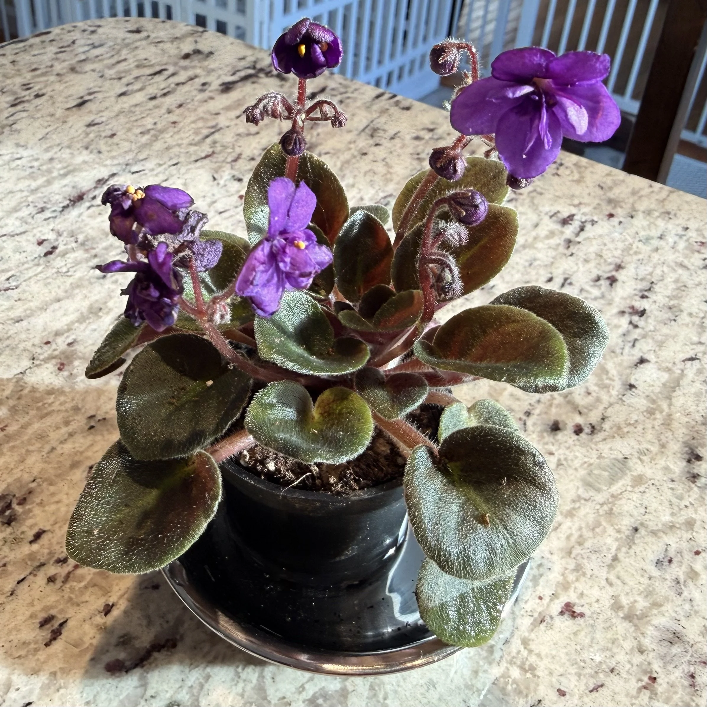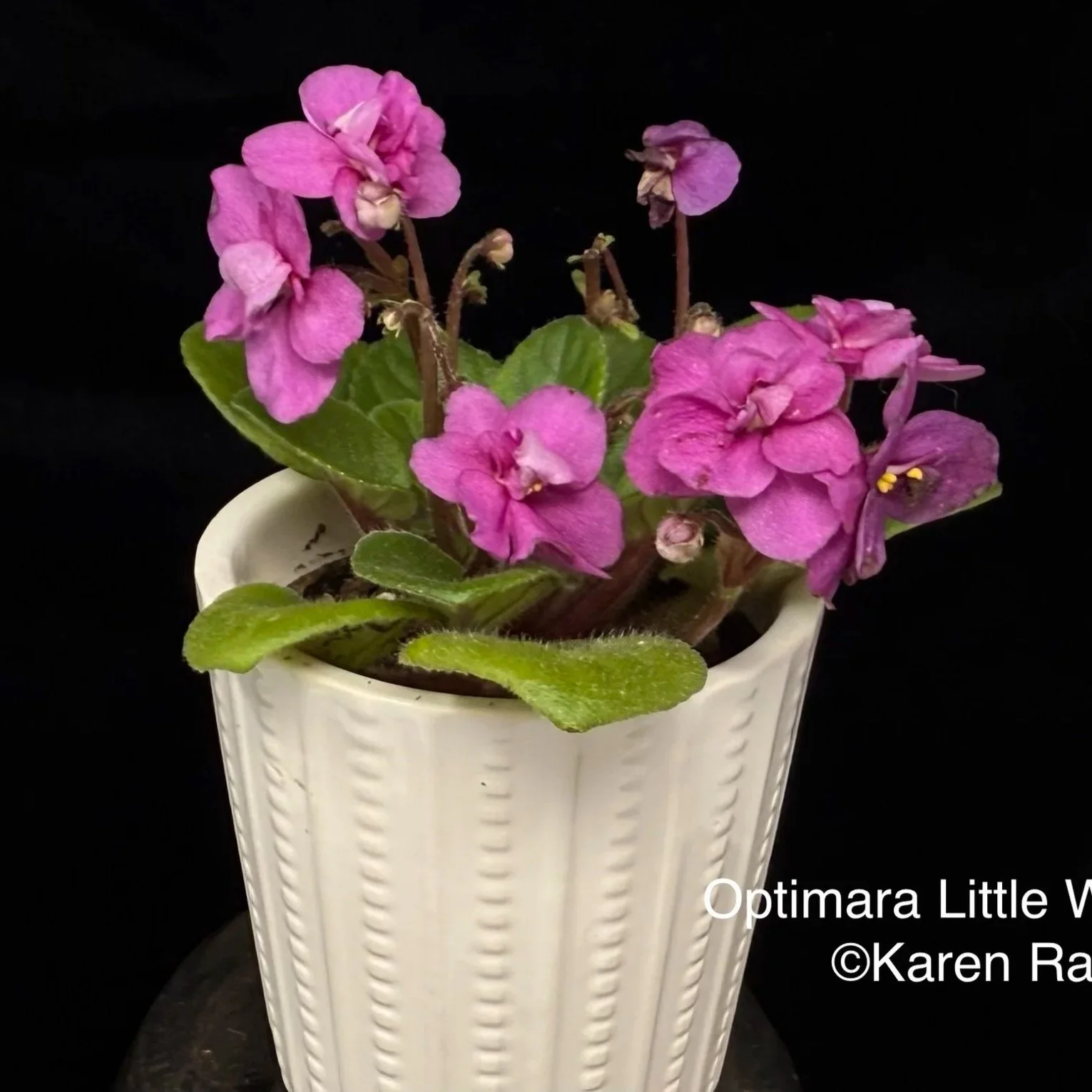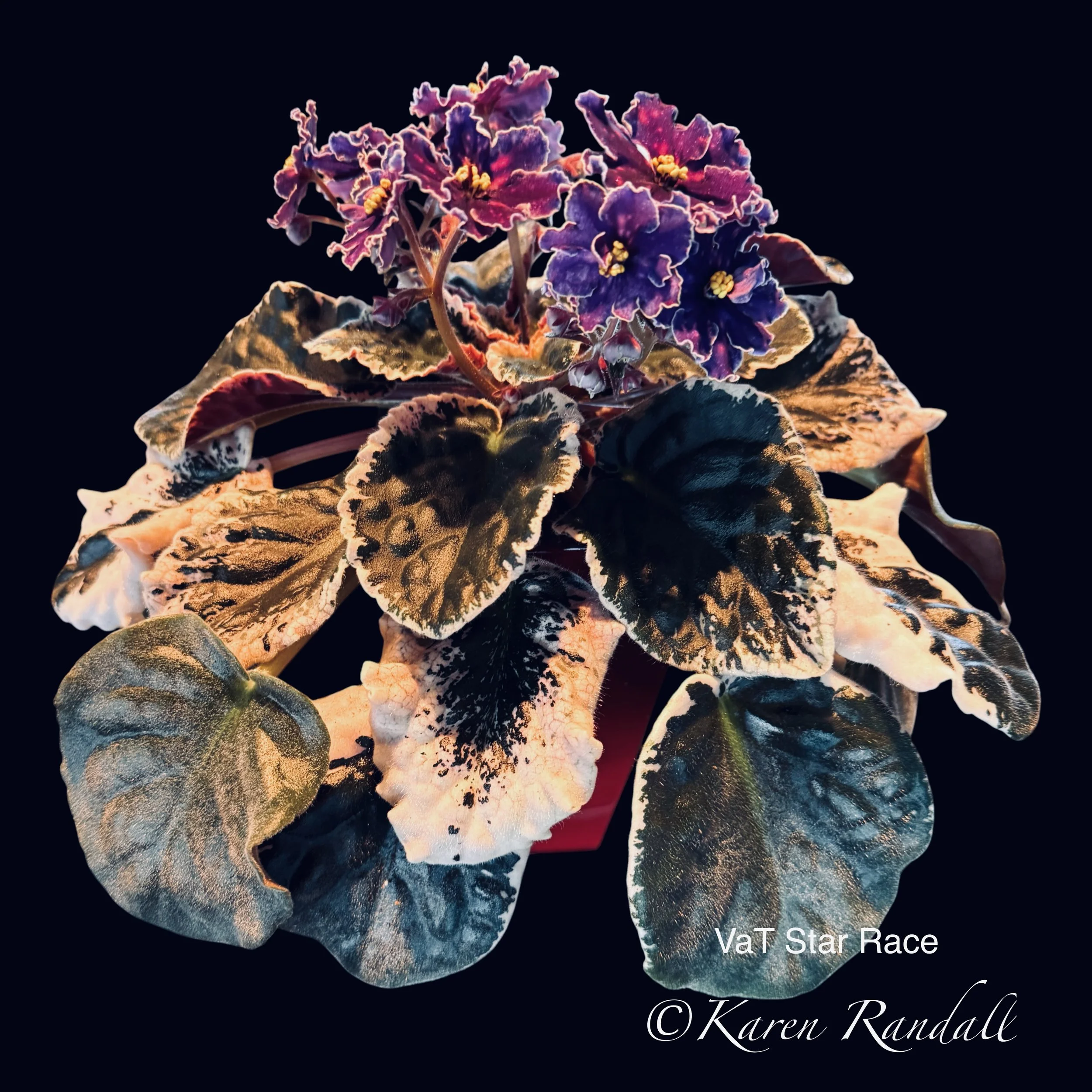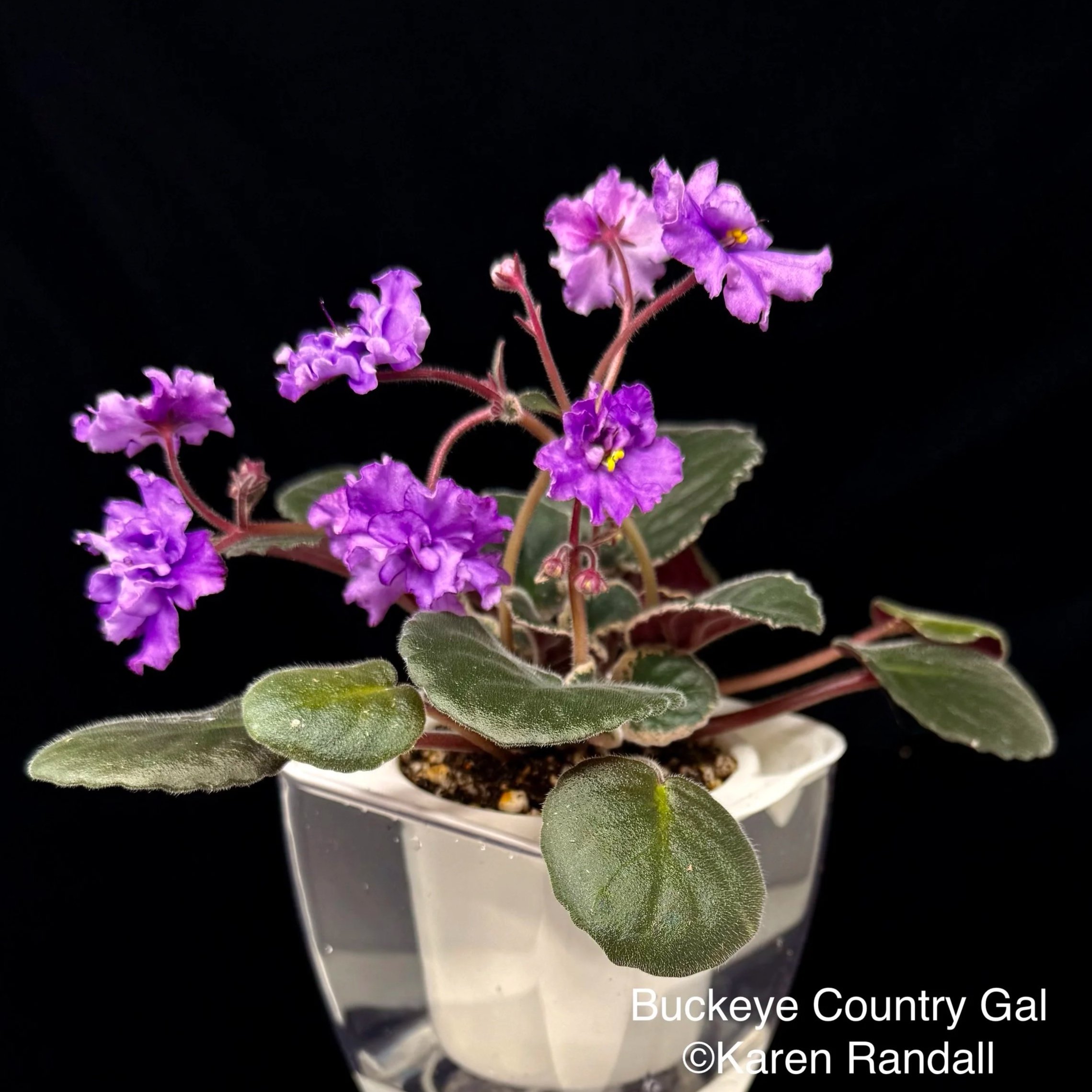 miniature African violet cultivar known for its simple, wavy, purple star-shaped flowers and distinctly variegated "girl" type foliage.